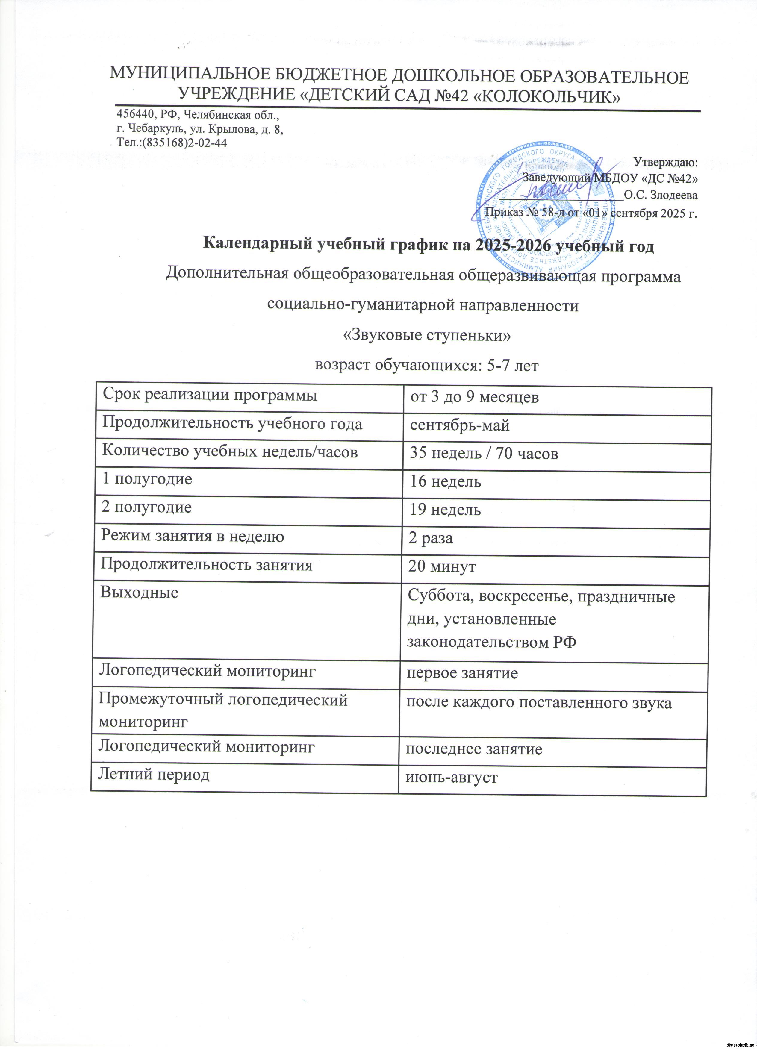 Календарный учебный график на 2025-2026 учебный год Дополнительная общеразвивающая программа социально-гуманитарной направленности "Звуковые ступеньки 5-7 лет"